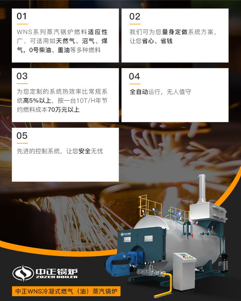 WNS系列燃氣(油)鍋爐具有安全可靠、高效率、節能環保、維護方便、經久耐用、全自動智能控制等特點。